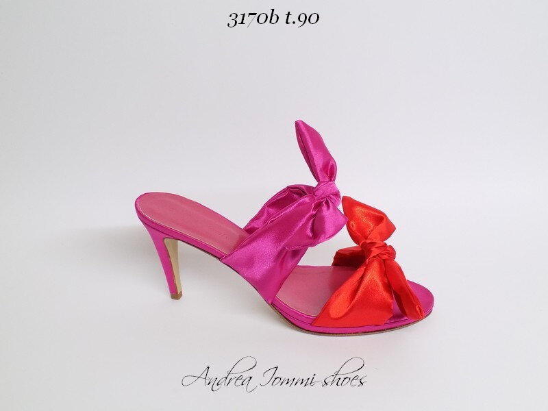 sandali con nodi in tessuto fuxia e rosso tacco 7