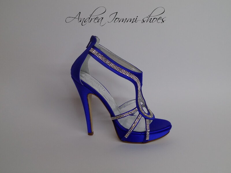sandali da sposa in raso bluette con cristalli swarovski, tacco 12