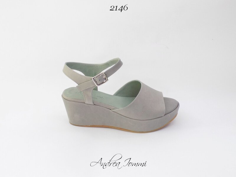 sandali in pelle vegetale anallergica grigia con zeppa
