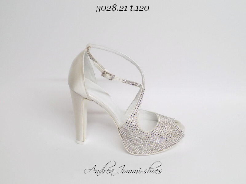 scarpe sposa gioiello open toe in raso bianco con cristalli swarovski, tacco 12
