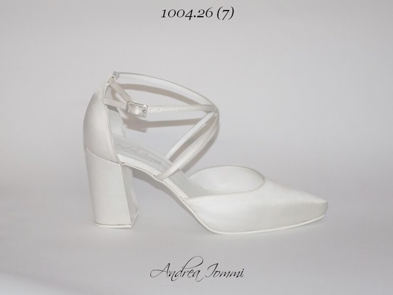 scarpe da sposa punta chiusa in raso bianco seta, tacco largo