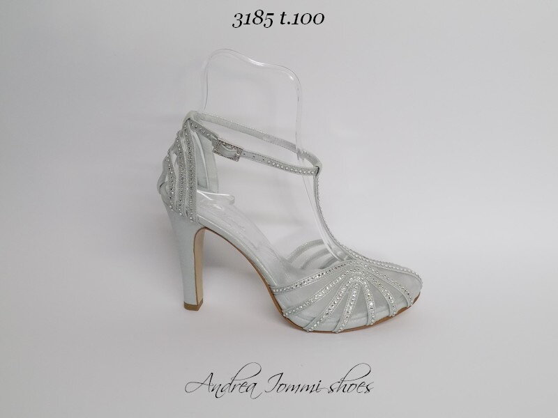 scarpe gioiello in satinato argento con Cristalli Swarovski, tacco 10 cm